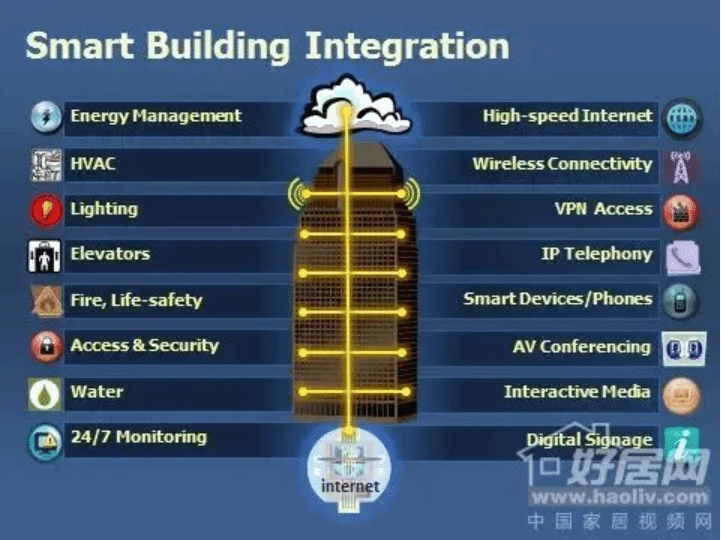 智能建筑指通过将建筑物的结构、系统、服务和管理根据用户的需求进行最优化组合,从而为用户提供一个高效、舒适、便利的人性化建筑环境。智能建筑是集现代科学技术之大成的产物。其技术基础主要由现代建筑技术、现代电脑技术、现代通讯技术和现代控制技术所组成。