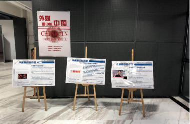 获奖队伍将自己收集的材料制作成展板,于7月3日-7月20日在探球比分 大厅进行“China in Foreign Media·外媒眼中的中国”作品展,受到全校师生的关注,时常有人驻足观看,成为我校草堂校区一道亮丽的风景线。