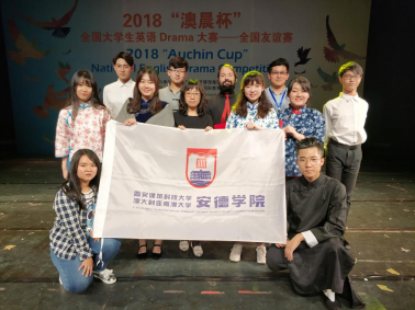 2018年5月26日,“澳晨杯”全国大学生英语Drama大赛在南京航空航天大学艺术中心落下帷幕,我院话剧团参加并取得了团体三等奖和个人最佳舞台表演奖的优异成绩,该赛事由AEMG澳大利亚教育管理集团主办、南京航空航天大学承办。