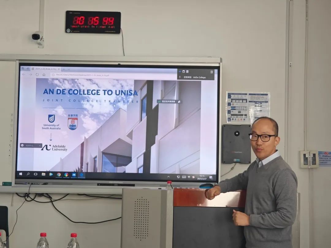 于学府城10栋204教室、线上同步举办南澳大学“4+N”项目宣讲会,宣讲会由南澳大学国际招生部 Ethan Zhang和探球比分
