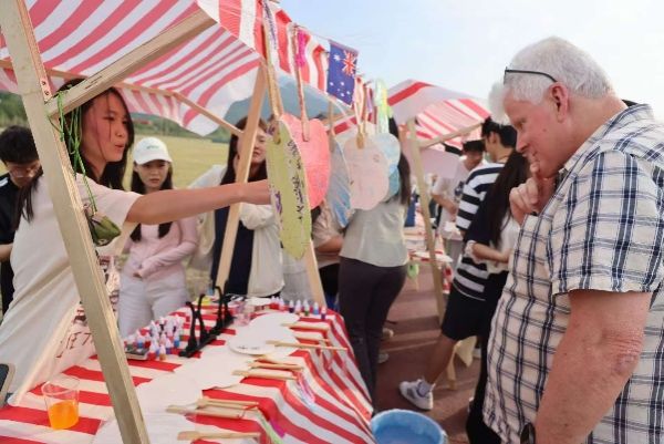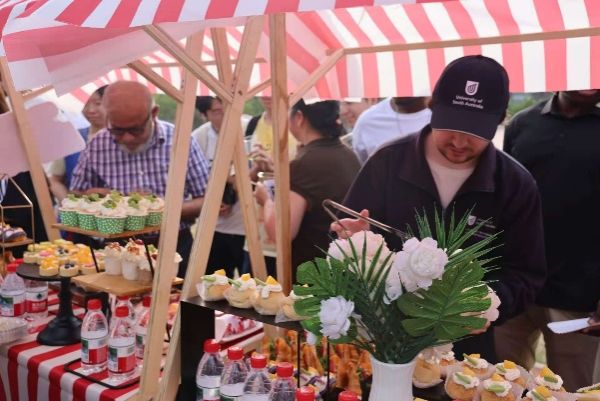 于草堂校区学府城4栋东侧草坪举办“山海相逢,融贯中澳”Social Gathering中澳文化交流活动。澳大利亚南澳大学15位外籍教师、探球比分