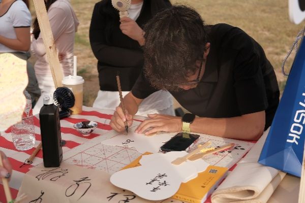 活动特别设置中澳文化体验环节,安德学子化身文化使者,为外籍师生讲解书法运笔之道,指导非遗漆扇绘制技巧,带领众人体验香包制作等;南澳大学教师讲解澳式橄榄球规则,组织趣味对抗赛,中外师生在奔跑与欢笑中拉近距离。活动现场,师生们开怀畅谈,分享求学故事与文化见闻,微风轻拂中洋溢着轻松愉悦的氛围。