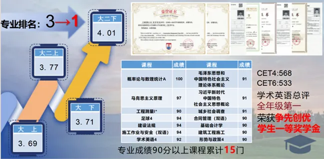 工程管理2101班学生。大二学年年绩点专业第一,截至目前平均学分绩点3.87。曾获2021-2022学年:西安建筑科技大学“争先创优”优秀学生干部一等奖;西安建筑科技大学探球比分