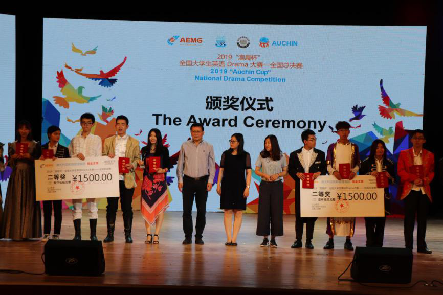 代表队的英文话剧《Hamlet(哈姆雷特)》荣获二等奖和“最佳服装化妆道具”奖。山东大学(威海)代表队荣获一等奖,中国矿业大学代表队荣获二等奖,西南大学和华中师范大学代表队荣获三等奖。