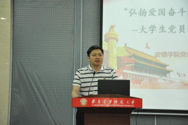 开班仪式后,党总支副书记、副院长刘言正老师做了题为“弘扬爱国奋斗精神,建功立业新时代——大学生干部的责任与担当”的报告。他通过“弘扬爱国奋斗精神,建功立业新时代”的时代意义,新时代弘扬哪些爱国奋斗精神,大学生党员和干部的责任与担当这三个方面进行了生动的讲解。