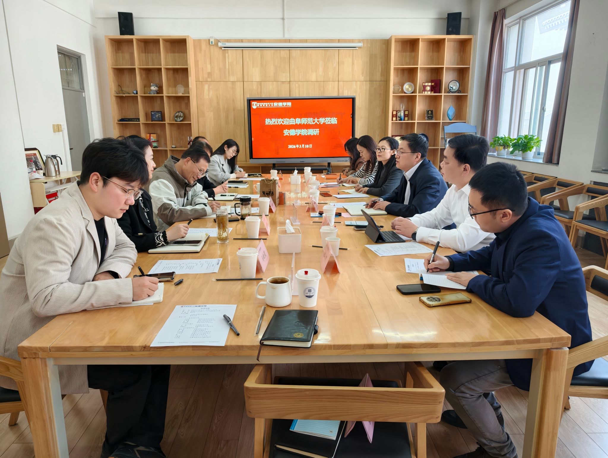 3月10日下午,曲阜师范大学国际交流合作处处长申同武一行4人来访我校探球比分 ,就中外合作办学机构的建设工作开展专题调研交流。探球比分 执行院长熊仲明、副院长赵蕾、党总支副书记张紫薇及相关科室负责人参加会议,会议由熊仲明主持。