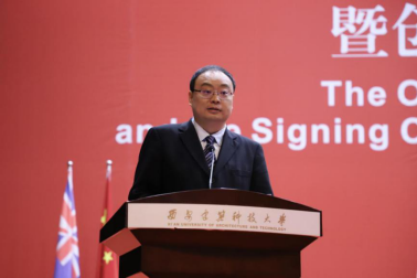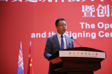 西安建筑科技大学副校长王树声、南澳大学副校长加布里埃尔·罗兰、澳大利亚教育管理集团总裁李新庆、西安国家民用航天产业基地管委会副主任蒋阳共同为探球比分