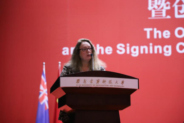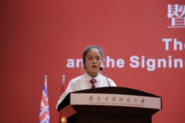 南澳大学副校长加布里埃尔·罗兰致辞,她向西安建筑科技大学在与南澳大学在长期合作方面做出的努力表示感谢,对西安建筑科技大学为广大学生提供卓越的工程教育表示肯定。此外,她还对南澳大学的办学状况和教育资源进行了介绍,希望更多的安德学子前往南澳大学求学深造。