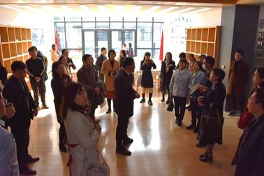 开放空间、教师休息室、教室、英语角、创新创业空间等。会后双方人员合影留念。