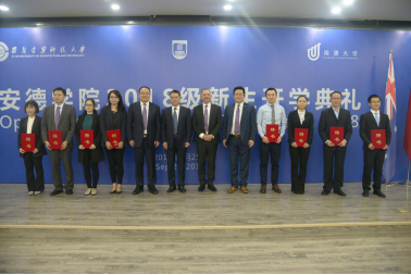 南澳大学副校长兼教务长Allan Evans,澳大利亚教育集团总裁李新庆,西安建筑科技大学副校长牛荻涛、王树声为2018级本科生班主任颁发了聘书。