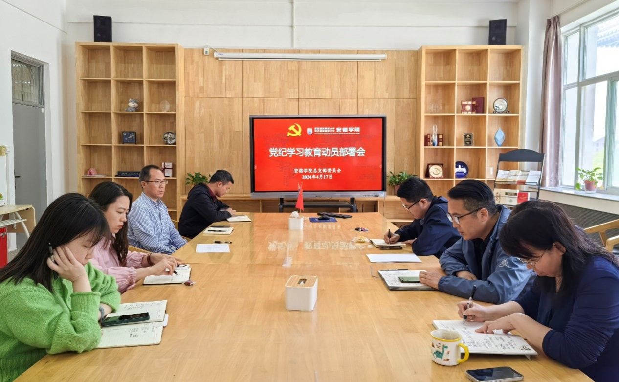 在学院212会议室召开党纪学习教育动员部署会,传达学校党纪学习教育动员部署会会议精神,部署学院党纪学习教育工作具体实施方案。学院党总支委员、纪检委员、各支部书记参加会议,会议由党总支书记罗明忠主持。