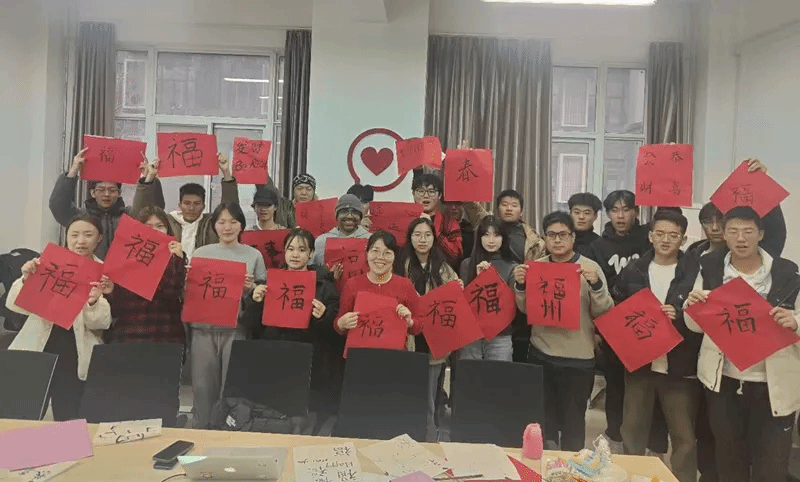 红纸上,一个个可爱、松弛的“福”字跃然而出,不仅代表美好生活的向往,更是中外文化交融的见证。这一刻,文化的力量在笔尖流淌,心灵的共鸣在纸张间回响,共同绘制了一幅幅跨越国界、连接心灵的美丽画卷。