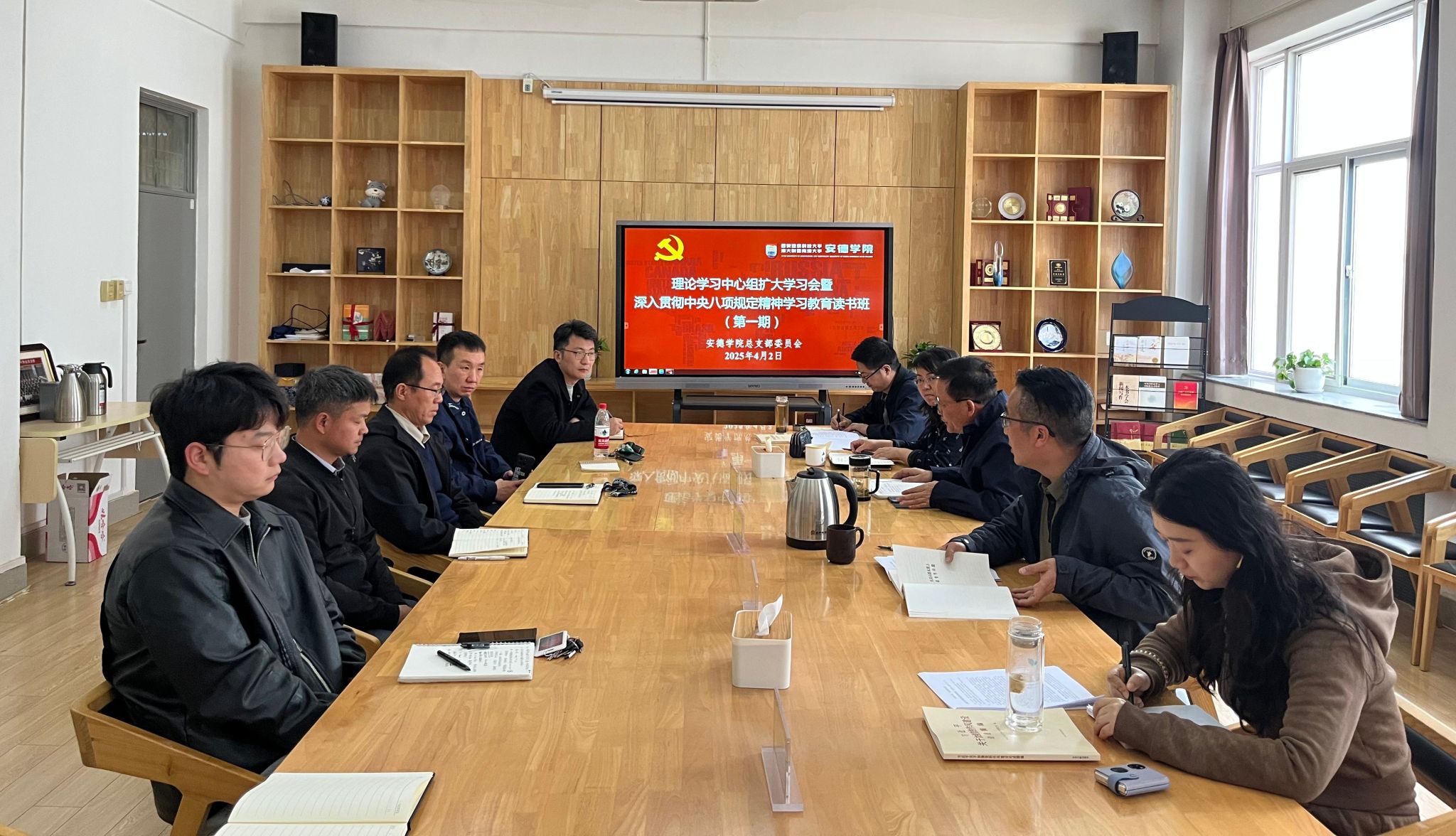 4月2日,探球比分 在学院212会议室召开理论学习中心组扩大学习会暨深入贯彻中央八项规定精神学习教育读书班第一期。会上学习了中共中央、国务院印发的《教育强国建设规划纲要(2024-2035年)》《习近平关于加强党的作风建设论述摘编》《中央八项规定》的内容。学院党总支委员、纪检委员、各党支部书记、职工代表参加会议,会议由党总支书记罗明忠主持。