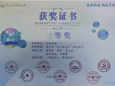 在“YE's演说家”朗诵活动中,五名优秀的23级安德学子紧扣时代脉搏朗诵《请党放心,强国有我》。他们用深情的话语、激昂的朗诵,诠释了爱国主义的深情厚谊,传递了青春的责任与担当,凭借富有激情的表现荣获三等奖。
