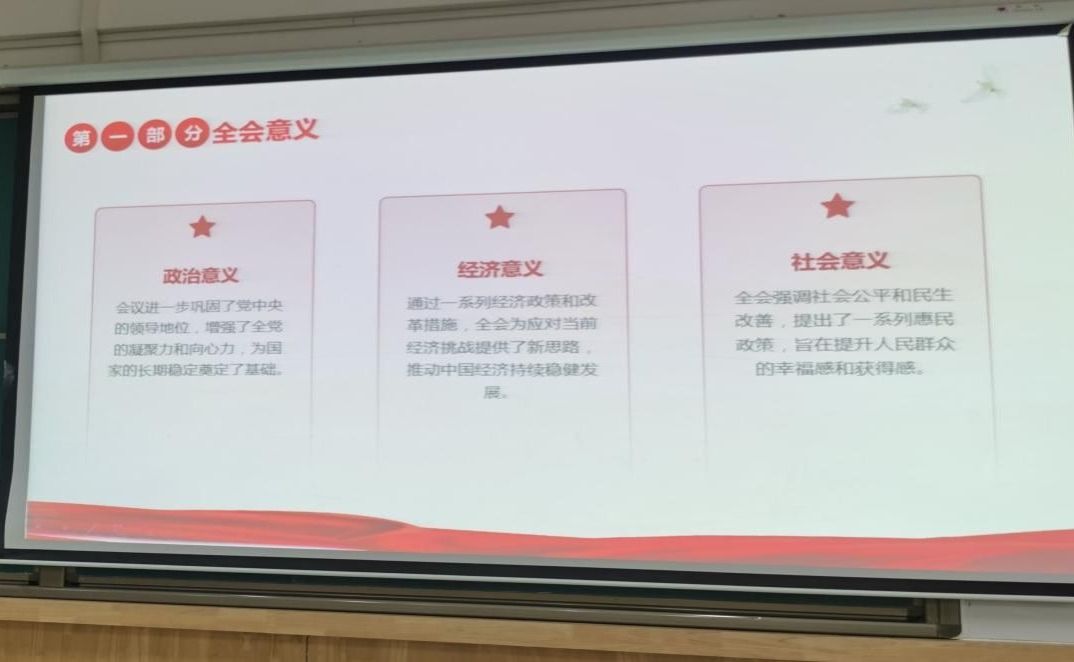 此次活动,首先集中学习党的二十届三中全会精神,重点讲解了会议的背景、意义、主要成果以及《决定》中的关键内容。通过讲解,同学们对会议精神有了全面而深刻的理解。随后组织开展了交流讨论环节。同学们纷纷发言,分享自己的学习心得和体会。