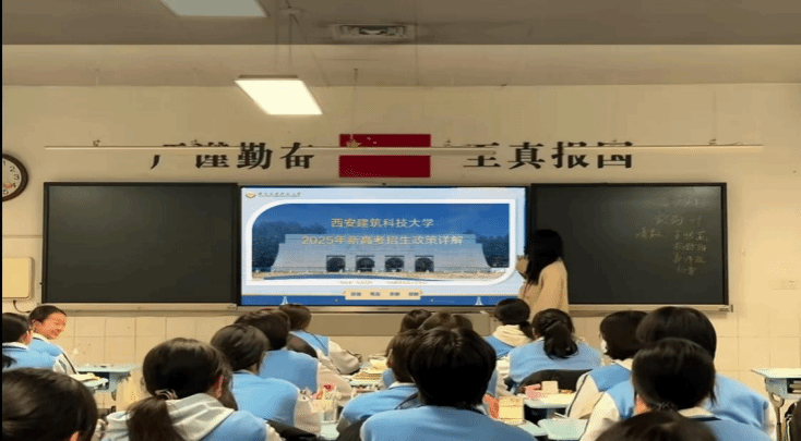 历城一中作为当地重点高中,多年来为各大高校输送了大量优秀人才。此次宣讲活动采用了主题讲座、互动交流、资料发放等多种形式。宣讲团队首先进行了一场精彩的主题讲座,通过精心制作的PPT,展示了西安建筑科技大学的校园风貌、学科特色、师资力量以及丰富多彩的社团活动,让学弟学妹们对大学生活充满向往。