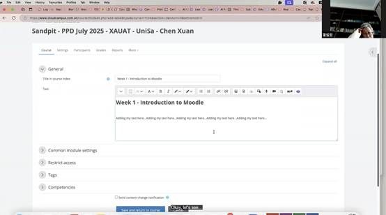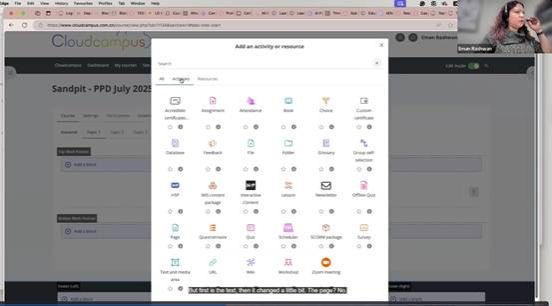 本次培训旨在帮助回国教师顺利高效地完成CloudCampus云校园课程建设任务。培训中,Natalia Zarina、Eman Rashwan系统讲解了云平台的核心功能模块,包括课程内容的结构化搭建、多媒体教学资源的集成与上传、在线互动活动(如讨论区、测验、作业提交)的设计与布置、以及学生学业进展的跟踪与评估等实用技能。培训过程中,并通过实例演示、分步操作指导等方式,进行了细致深入的讲解。